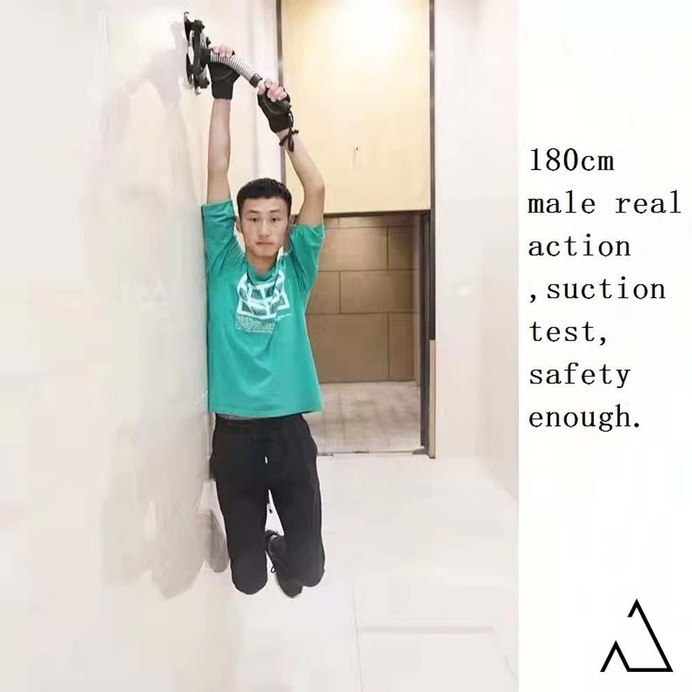 * برای استفاده حتما دقت شود که پایه ها روی سطح صاف و صیقلی قرار گیرد که هوا در زیر پایه ها نرود. اگر پایه ها در روی سطح صاف قرار گیرد، امکان جدا شدن از روی سطح وجود ندارد. (در تصویر حتی یک شخص 70 کیلویی از دستگاه آویزان شده)