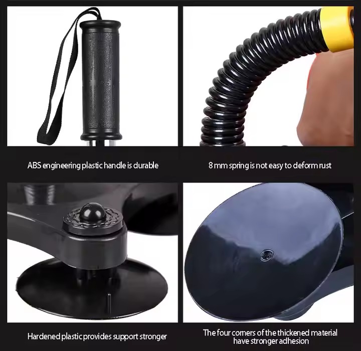 * برای استفاده حتما دقت شود که پایه ها روی سطح صاف و صیقلی قرار گیرد که هوا در زیر پایه ها نرود. اگر پایه ها در روی سطح صاف قرار گیرد، امکان جدا شدن از روی سطح وجود ندارد. (در تصویر حتی یک شخص 70 کیلویی از دستگاه آویزان شده)