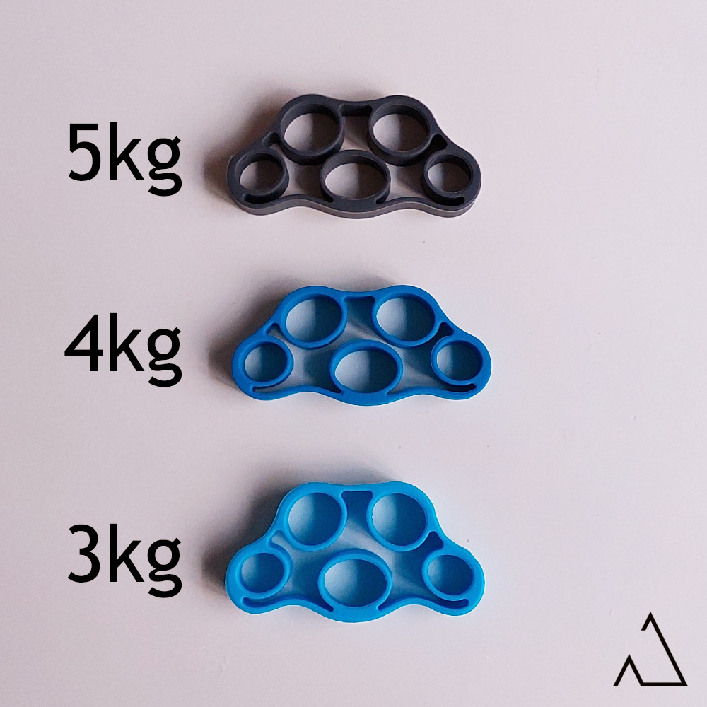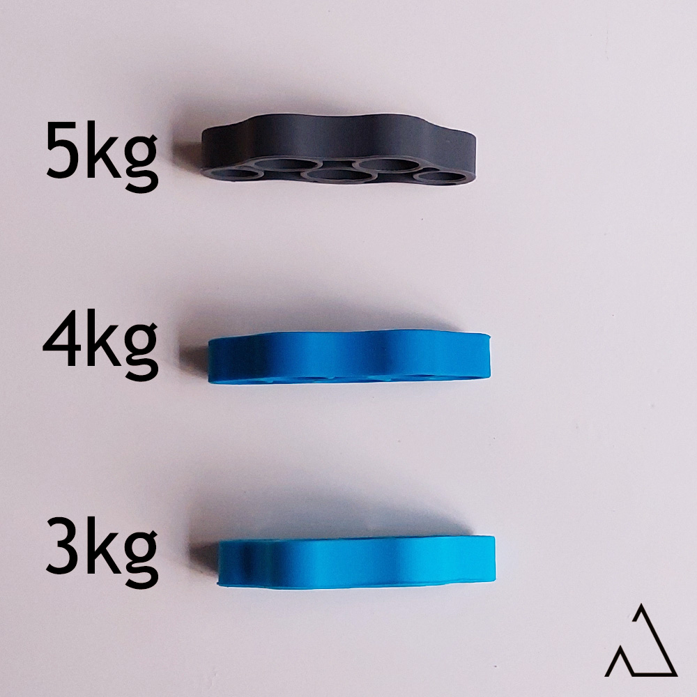 ست کامل کش تقویت انگشت دست برعکس سیلیکونی که دارای مقاومت 6.6 ، 8.8 و 11 پوندی که معادل 3، 4 و 5 کیلوگرم است: